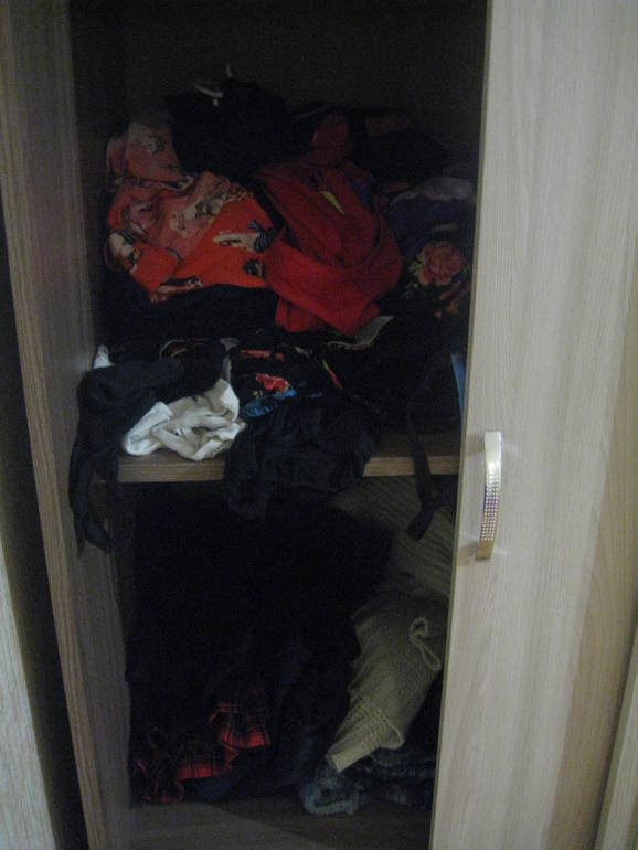 Лишнее убрала, то что давно не носила и из чего похудела (пока не знаю что с ним делать), непотребное выбросила