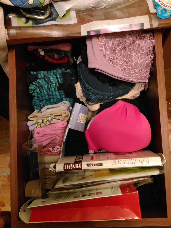 Кое-что поменяла местами. И теперь носки, колготки и бюсты лежат в одном ящике.