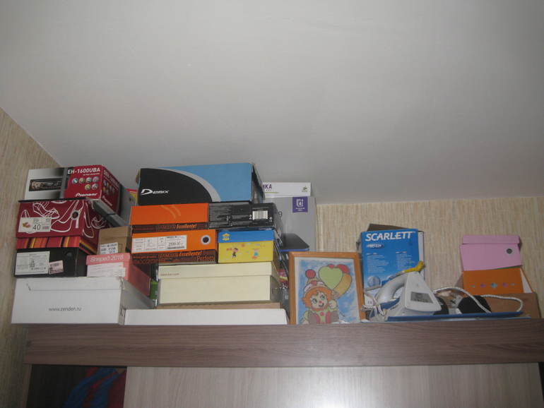 Сегодняшнее расхломление и темнушка два в одном, пока оставила так, но хочу все куда-нибудь распихать, не нравится завалы на шкафах(, коробки убрала в шкаф: