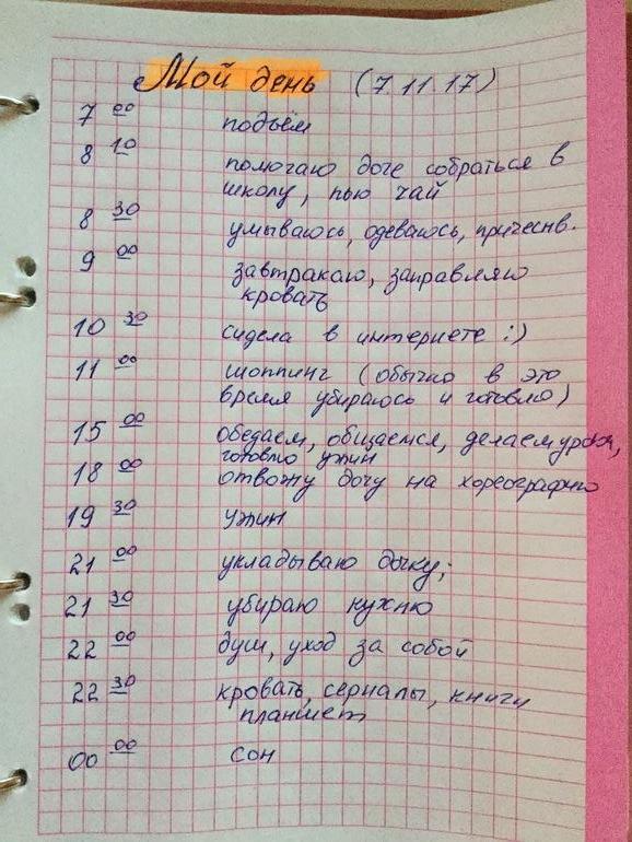 4. Купила тетрадку! Ура)) вот примерно сегодняшний день. В планшет заглядываю чаще, чем написано на 10 минут примерно (не могу же 20 раз написать в распорядке про иннет 😂...) все очень примерно: