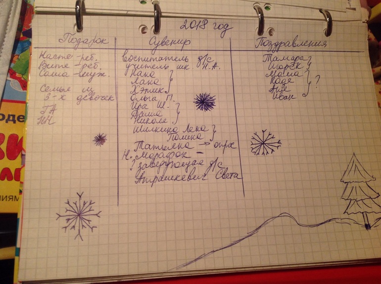 Отчитываемся по заданиямЗадание просто потрясающее!Я очень люблю дарить подарки,вот бы ещё денежек на это всегда хватало:)))В прошлом году участвовала в Новогоднем Марафоне и мы писали список подобный,с определением суммы на каждый,но этот вариант мне понравился больше,потому что точно видно кому какие варианты подарков дарить.