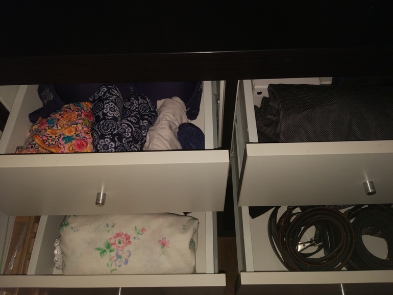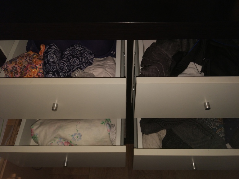 Всё своё я выбросила в прошлом взлете, так что протерла ящики и заглянула к мужу и старшей дочке. У дочки много лишнего обнаружила, ликвидировала бардак, с грустной улыбкой понимая, что порядок продержится только до утра...