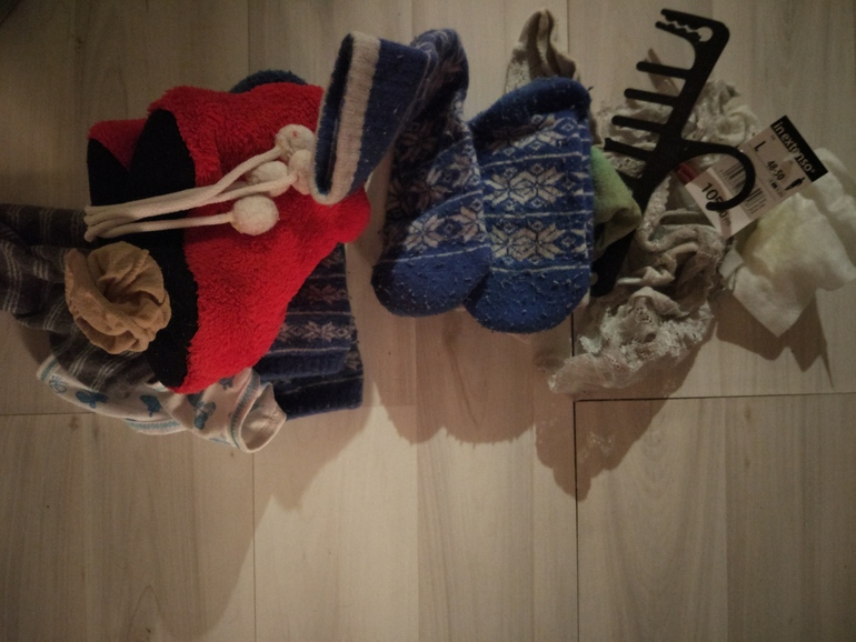 По второму дню: с домашней одеждой все ок, халатик новенький (в нем кормить малышку удобно) и несколько домашних платьев. С обувью проблема, привыкла ходить босиком, даже носочки не признаю (в квартире тёплый пол). На время уборки надеваю тапочки, но не нравятся они мне... Думаю попросить новенькие у деда мороза, помимо прочих желаний)