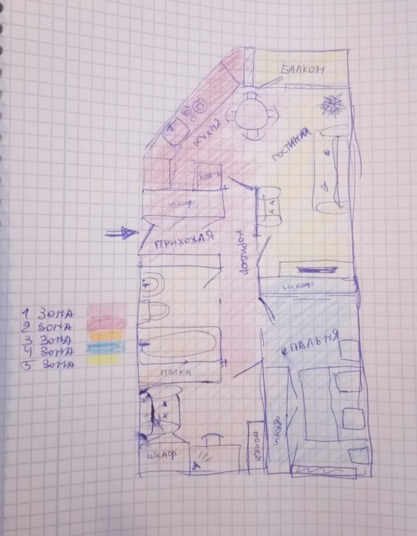 Разбивка на зоны: