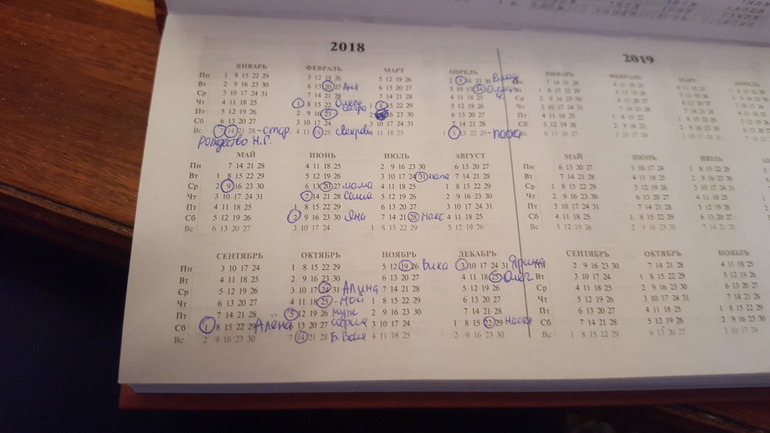 Отчитываемся по заданиямДоброго времени суток всем! Насчет календаря - у меня его нет... А родственников у мужа много, он сам не помнит их дни рождения, иногда забываем поздравить кого-то. Выберусь и куплю календарь, а пока что подготовила информацию, посмотрела у всех дни рождения в соц.сетях, у кого-то спросила=)