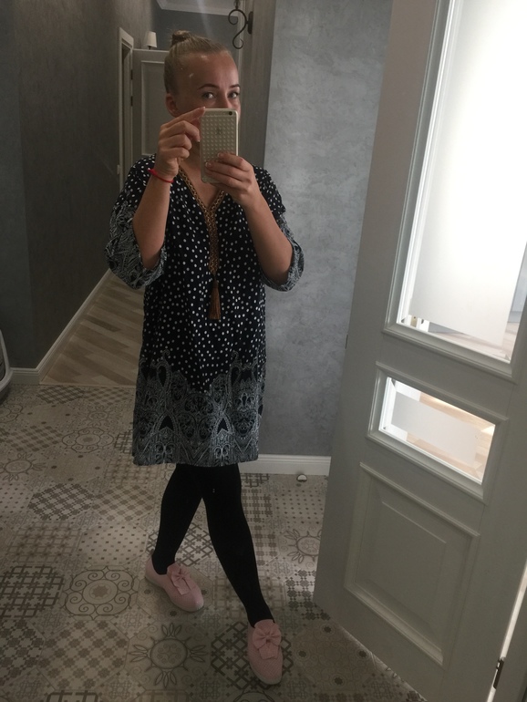 По одежде: так как я закоренелая мама в декрете, большая часть моей одежды покупается под грифом "для дома". Она не растянута, не линялая, очень даже симпатиШная. Но меня смутило следующее, что в половине из комплектов я выгляжу как "сумасшедшая тетка". В том, что мне казалось милым и удобным не возможно открыть дверь соседу. Поэтому на смену развеселым шортикам и топикам пришли платья- туники с лосинами или плотными колготками. Обувь нашла быстро, вполне сносно и удобно в ней ходить по дому, она не на шнурках, но и не тапочки-собачки