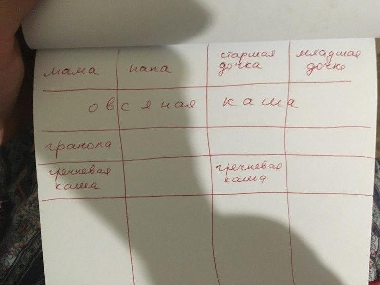 Прошу прощения за почерк, схема условная, но она демонстрирует наглядно, все ли едят это блюдо, несколько человек, только мама…
