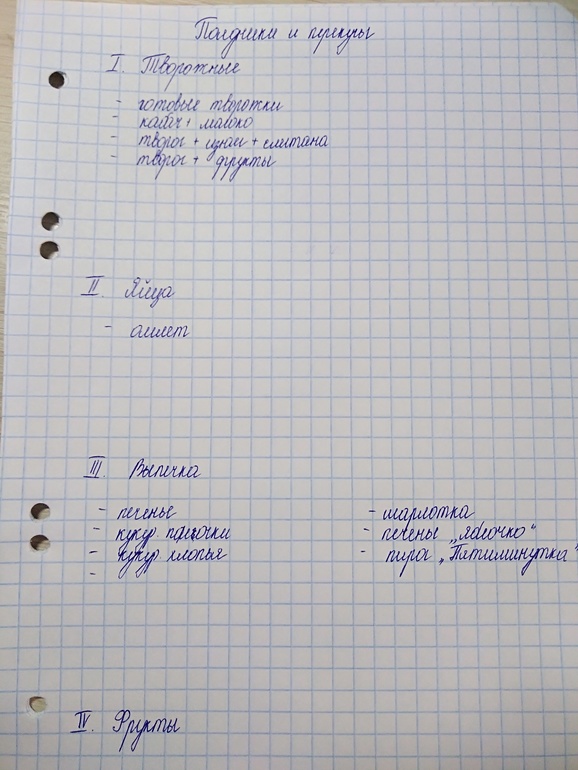 1. Завершаем список блюд, которые мы умеем готовить, дописываем полдник и перекусы