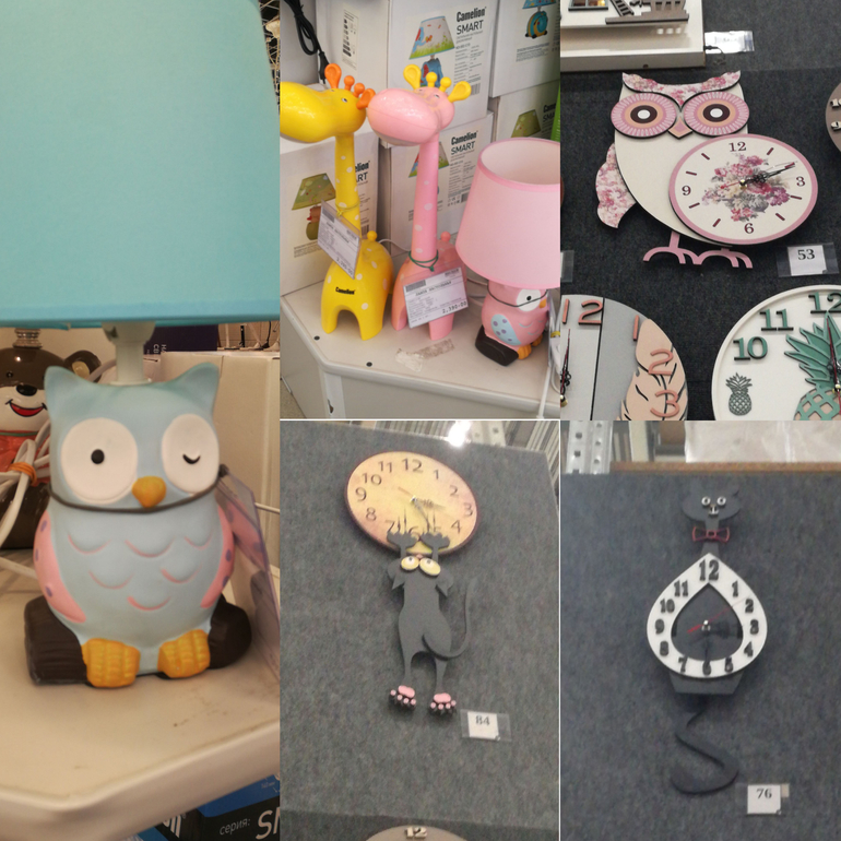 Очень долго рассматривала часы и детские лампы.... такая милота...я прям пипец как хочу в гостинную воо эти часы с котом спрлзающим...даже знаю, куда повесить их