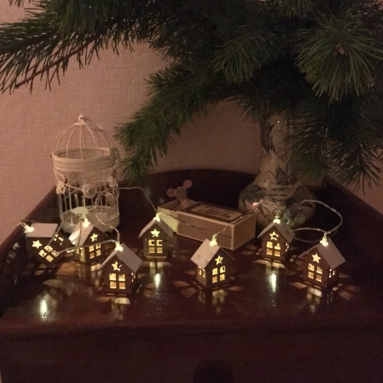 Еще у меня есть такие домики-гирлянды, очень люблю включать их на новогодних праздниках. Хочу прикупить себе еще больше гирлянд, повесить в спальню, на балкон и в детскую.