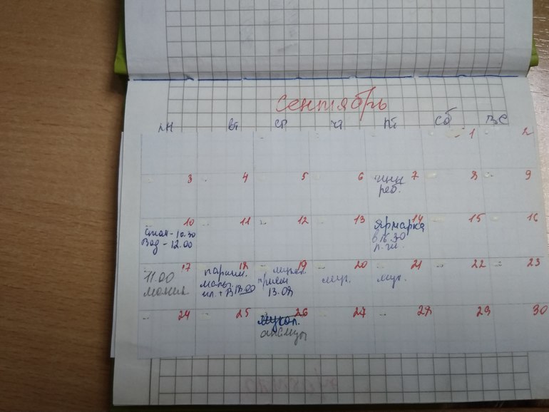 Семейный календарь имеется, но вот как то не особо он у мужа и детей приживается. А у меня имеется свой, карманный. Сюда я записываю все важные дела, мне удобно