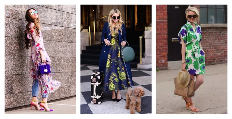 ✍️- Очень интересно смотрятся образы, когда третий аналоговый цвет "зашит" в принте или представлен в виде небольших ярких акцентов.