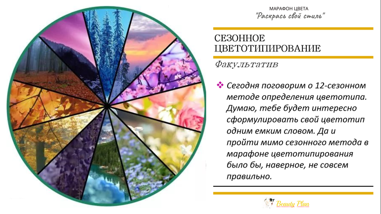 Девочки, сегодня домашнего задания не будет. Пост факультативный. Но мне было бы очень интересно, какой сезон у вас получился. Пиши об этом в комментариях к этому посту. Если до этого все посты были мои, авторские (блин, не люблю это слово за излишний пафос), то этот я сделала на основе сайта в интернете - просто сделала наглядные слайды и добавила шпаргалку. Так что сильно пояснять что-либо, наверное, не смогу.
