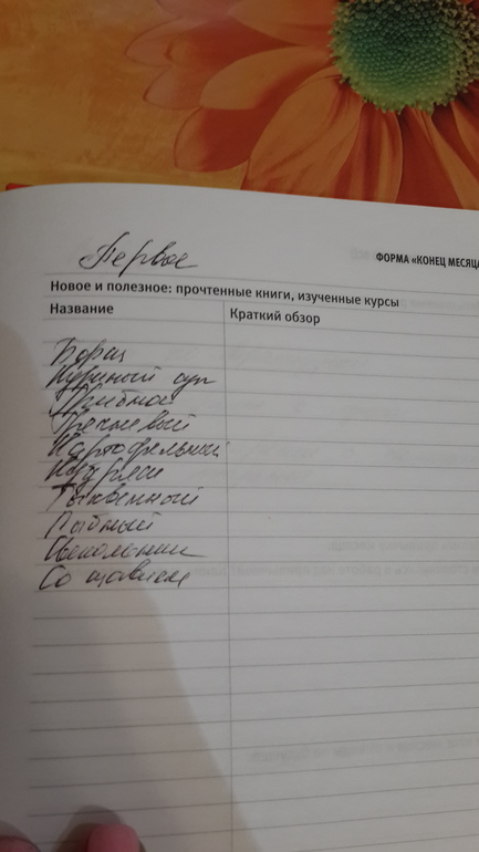 -список фильмов к просмотру - планирую еще книг к прочтению - но не знаю - пока некогда