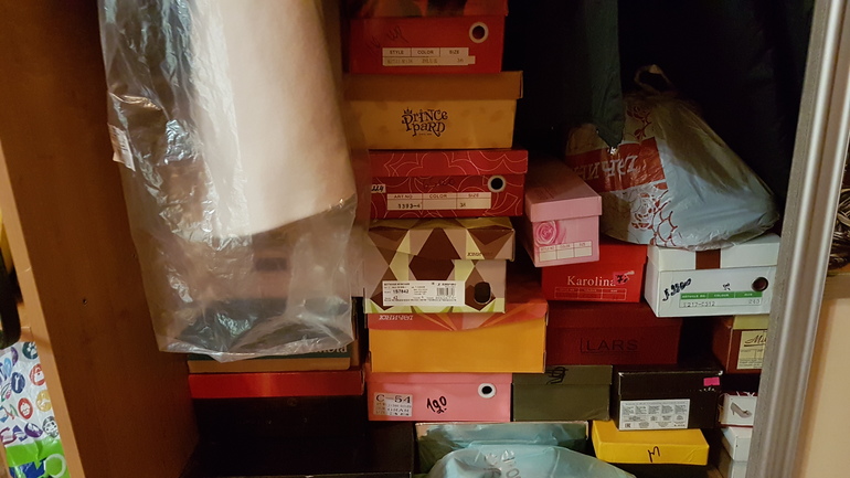 2 одинаковые коробки около обувницы ждут обмена на размер меньше... ошиблась. Еще три пары были постираны, высохнут, уберу. Объявления разместила на авито, но на зимнюю обувь например не сезон и скорее всего зависнут до поздней осени :(