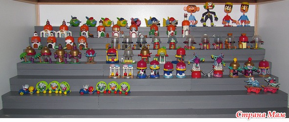 Хранение мелких игрушек, киндеров. Если таких игрушек много и ребенку нравится с ними возиться, выделите для них контейнер. Если же вы собираете коллекцию из нескольких штук, то можно организовать хранение на узких полочках. Подойдут полки, которые обычно в маникюрных салонах используют для хранения гель-лаков.