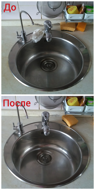 В раковине у нас практически всегда посуда. Посудомойки и места для складывания грязной посуды нет, посуду днём моет сиделка свекрови. После первого взлёта я мыла посуду перед сном, но потом стала забивать на это: во-первых, сиделка всё равно помоет это с утра, во-вторых, мойка отнимает время от сна, в-третьих, завтрак по будням готовит муж и с утра раковина опять заставлена. Так что я отмываю раковину во время работы в зоне, а в остальное время не слежу за ней.
