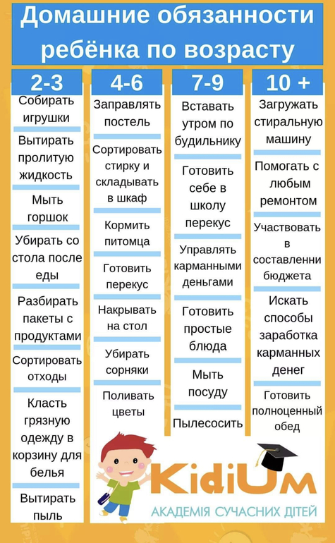 Скажу сразу, что по поводу мытья горшка там были эпические войны на десятки страниц, поэтому этот пункт предлагаю сразу игнорировать. В остальном я собираюсь по мере взросления эксплуатировать мелкого в соответствии с таблицей (хотя бы пытаться).