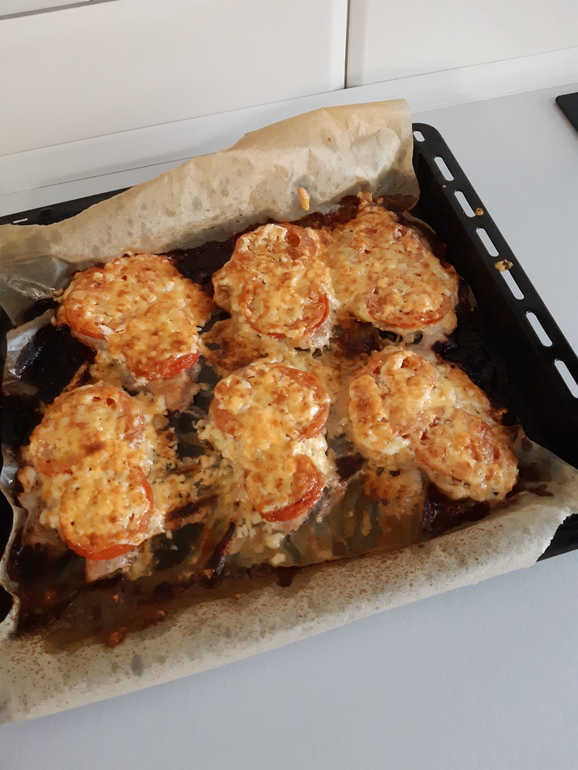 Выходные насыщены, поэтому пюре - это всем, взрослым - мясо по-французски ( я так называю - просто свинина, помидоры, майонез и сыр),