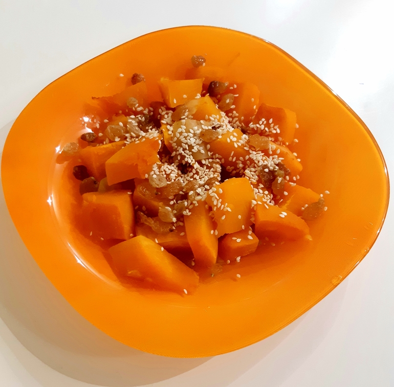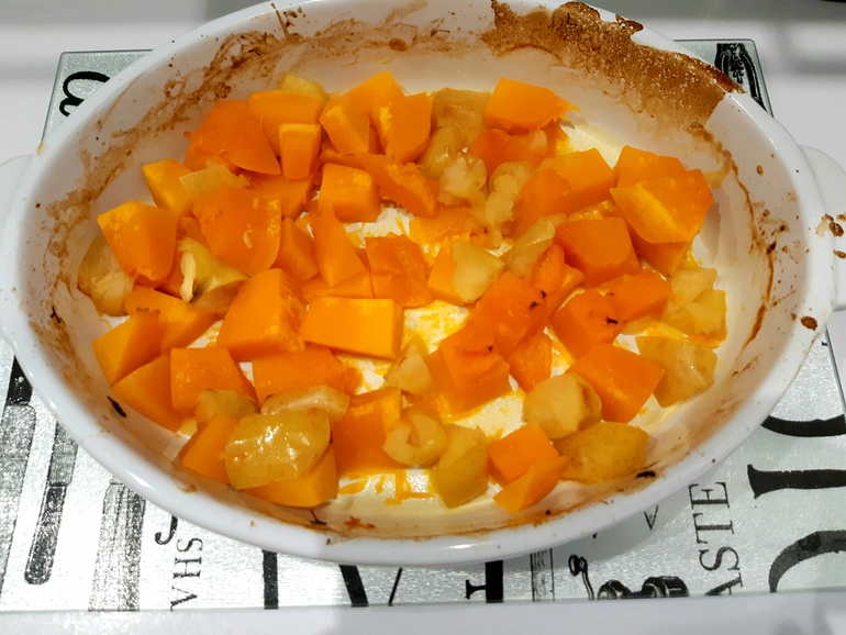 И делала мой любимый десерт - я рассказывала про него - тыква с яблоками с медом. В этот раз распробовала Аришуля, смолотила полтарелки - просто стоя рядом со шпажкой.... Вот так вот, в большой семье надолго рот не открывают)))