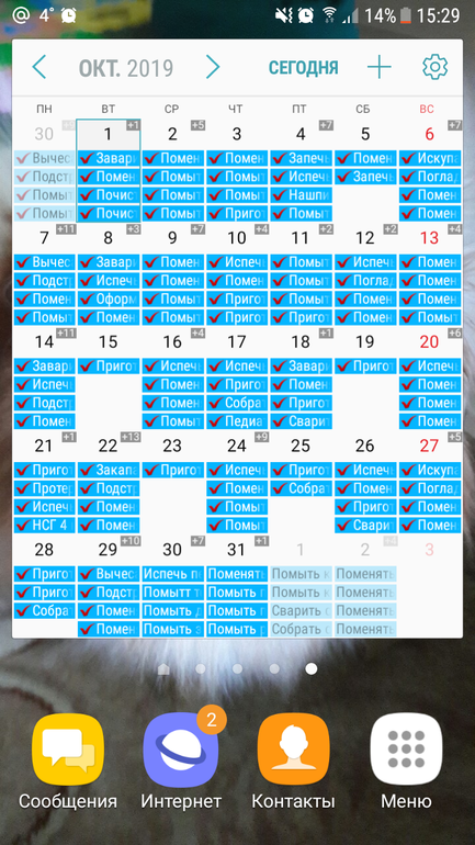 Стикеры и бумажки - это не мое - уже несколько раз пробовала. Все дела записываю в календаре на телефоне. Раз уж надо фото - вот скрин моего календаря.