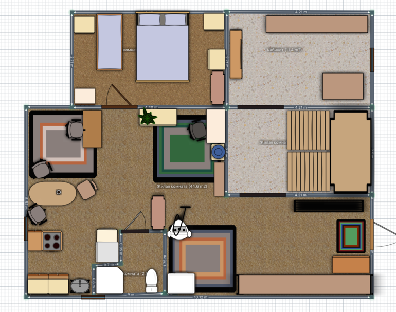 Гостиная - ??? у меня ее нет сейчас. Будет когда доделаем первый этаж, там зона у камина с диванчиком, а сейчас у нас в столовой гостиная получается, так смысл в отдельную зону отделять?