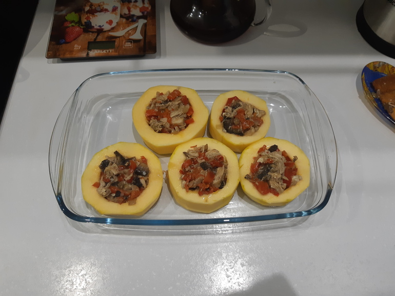 Осталось 2 кабачка и вместо обычных запеченых овощей вспомнила кольца , которые делала пол лета. Просто, вкусно и даже муж ест)) Правда, себе делала сейчас лайт вариант, обычно кольца обжариваю немного в муке и подсаливаю. Сейчас простт так. Начинка - лук, грибы, курица, перец болгарский, яйцо, соль перец. Сверху сыр. Кстати, кабачок, конечно, был пресноват сперва, а на след день, видать начинкой все пропиталось, вкуснота