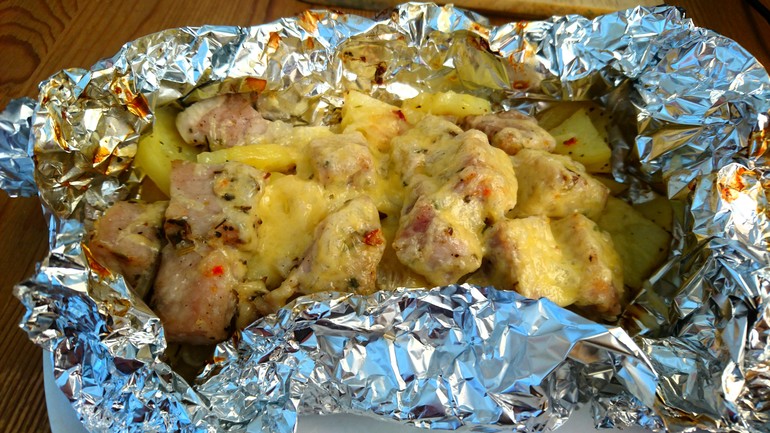 Мы выпечку временно отложили - очень хочется быть стройной))) Поэтому делали фасоль стручковую в сметане и тилапию в духовке - выложить в формочку из фольги, сбрызнуть оливковым маслом, добавить соль и специи для рыбы - нравятся из ВкусВилла Картошка с мясом в фольге - замариновать мясо в сметане и специях, картошку смешать с травами и солью, выложить на фольгу, сверху лук полукольцами, а потом мясо. Завернуть конвертик и в духовку 200 гр 40 минут, потом открыть и под гриль на 5 минут. Можно перед грилем посыпать сыром М-ммм, очень вкусно. Картошка в фольге вся пропитывается соком с мяса, и блюдо получается очень легкое и безумно вкусное