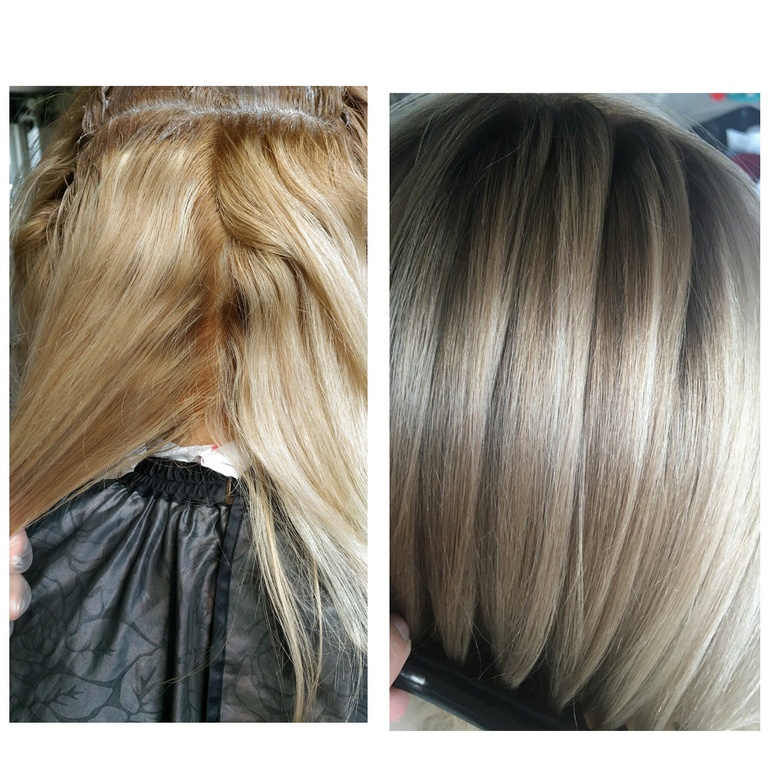 Подскажите девушка посередине на фото какая цена окрашивания? У меня длина ниже плеч