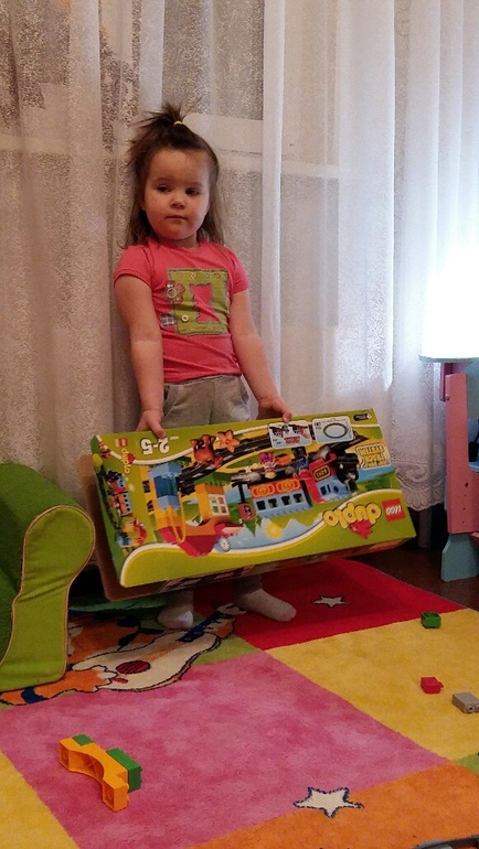 Часто слышу, что у девочек нашего возраста куклы не в почете. Вот и мы не исключение. Куклы интересуют мало. Максимум раздеть и раскидать одежду))) А вот с транспортом как-то лучше дружба складывается. Особенно с «ту-ту». Нет, дочка умеет говорить правильно, но так уж повелось… И вот наше депо пополнилось поездом LEGO DUPLO.