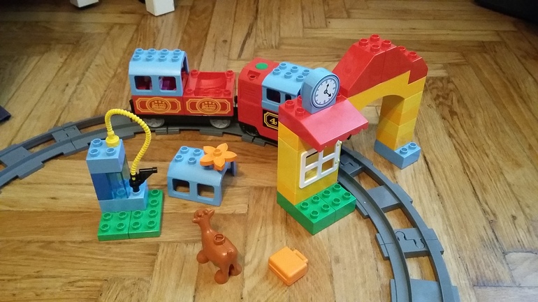 Как и во всех наборах LEGO, в наборе «Мой первый поезд» есть все необходимое для интересной и разнообразной игры. Поезд состоит из локомотива и вагона, в которые можно посадить машиниста и пассажиров.