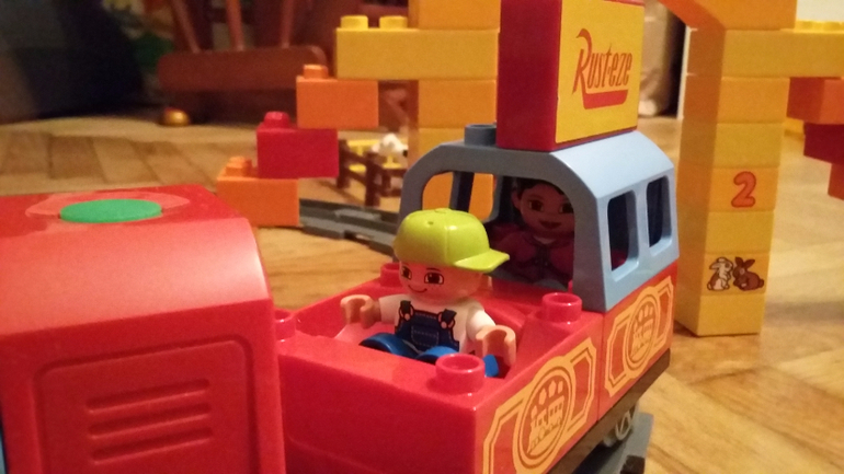 Наигравшись поездом в стандартной сборке, неугомонные мальчишки решили поэкспериментировать. Дети очень любят исследовать мир. Например, они захотели узнать, что же будет, если положить на рельсы перед поездом часть забора из набора «Большая ферма». Поезд оказался настолько мощным, что повез забор перед собой! Тогда решили опробовать крышу. Но и с крышей он справился и остановился лишь тогда, когда доехал до железнодорожной станции и уже крышу вместе со станцией не смог увезти.