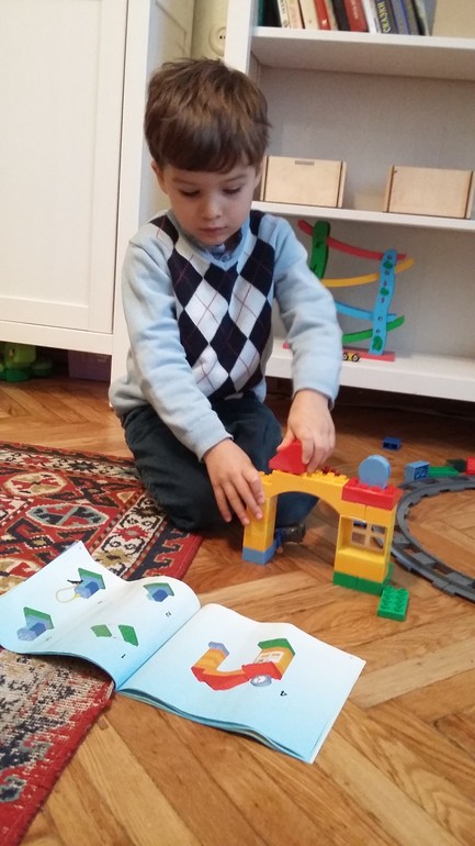Пока папа вставлял батарейки в локомотив и удивлялся, насколько надежно они спрятаны от детей в поезде, Лука собрал дорогу и приступил к сборке железнодорожной станции. Инструкция оказалось достаточно понятной для него, а ему ведь всего четыре года!