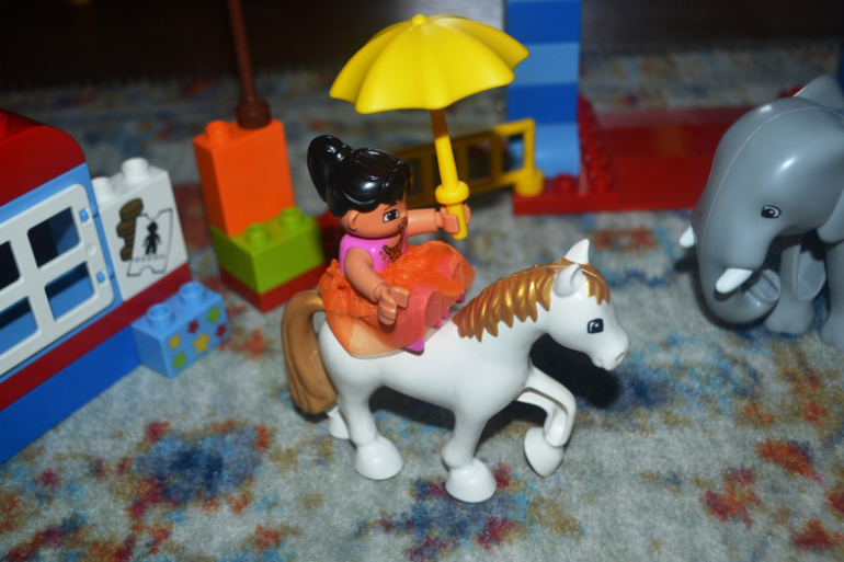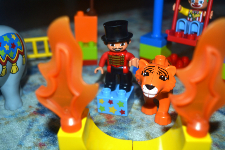 Несмотря на название, набор не такой уж большой, из сооружений только кулисы, касса, качели, барьер с огнем, но детали все интересные, немного творчества и можно построить много всего необычного. И все же главная прелесть набора в том, что в него входят уникальные минифигурки и интересные ребенку животные. Дупло-человечки действительно классные, в этом наборе их 3: