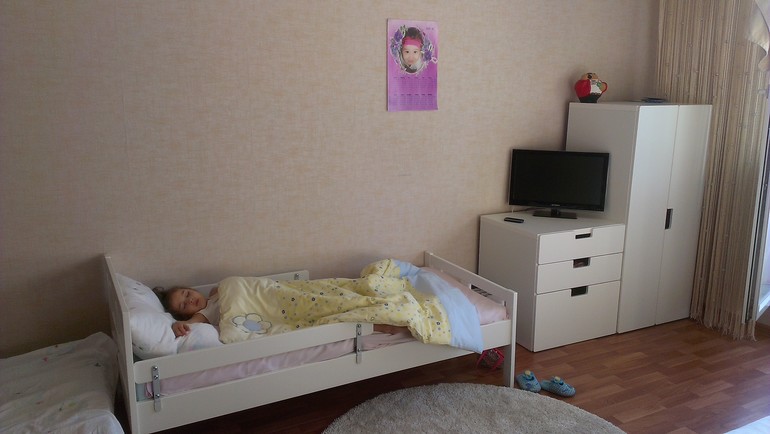 Здравствуйте! у нас такая же кроватка,а с мебелью не можем определиться. Все дочкины вещи вошли в этот шкаф и комод? в шкафу только вешалки или еще полочка есть? а для книг и игрушек где у вас место?