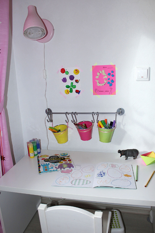 Рабочая зона. Пока не придумала, как крепить рисунки на стену, поэтому на цветном скотче )