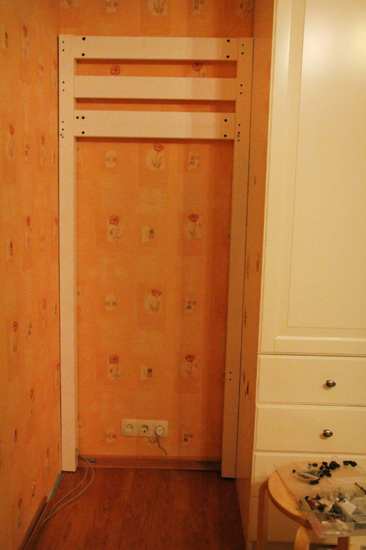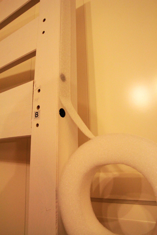 Приклеила мягкую подложку, чтобы не поцарапать болтами шкаф, на фото выше видно, что все впритык.