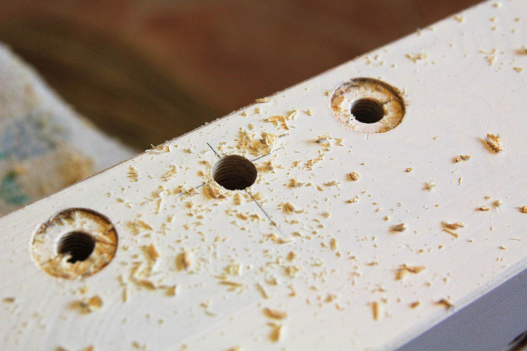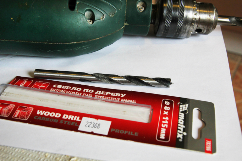 Купила сверло по дереву диаметром 8мм - это для отверстий болтов стяжки.