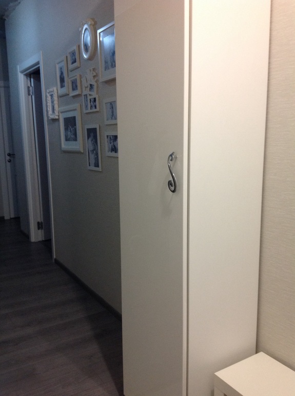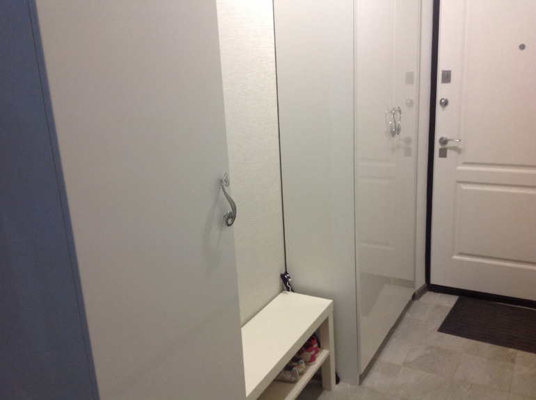 продолжаем потихонечку обставлять квартиру. Прикупили два пакса и банкетку, правда нужного размера банкетки не нашлось и теперь банкеткой нам служит подставка под ТВ. Коридор у нас длинный и узкий и в него идеально вписались эти шкафы. Как оформить стену над банкеткой пока не знаю, но какие то крючки там определенно будут.