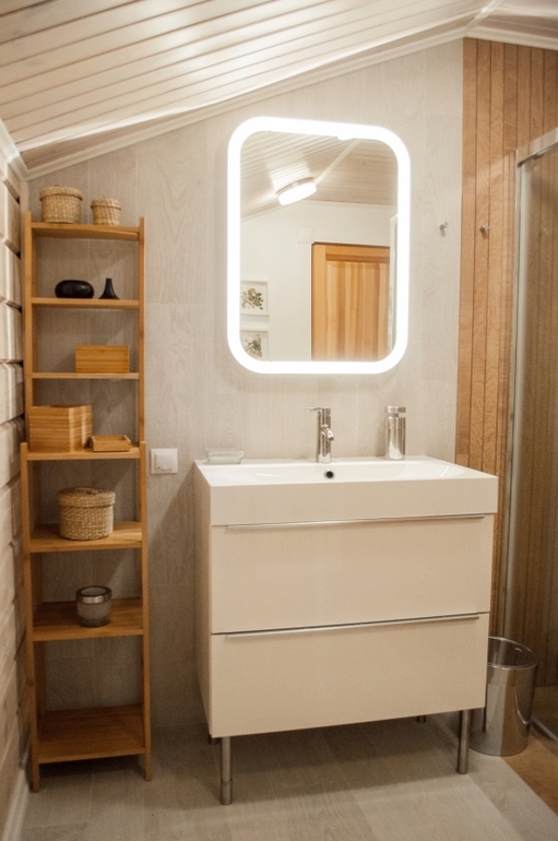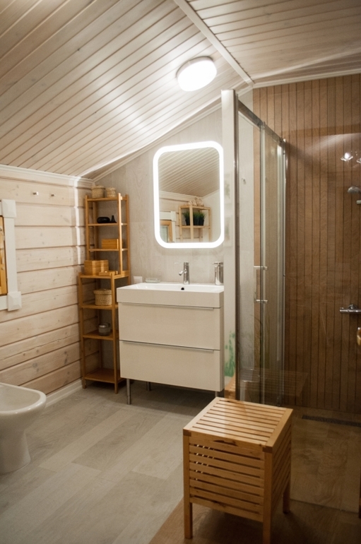 В материалах не сильна, но однозначно, что-то влагостойкое. Есть такая плитка, есть всякие материалы, на вид, как ламинат или дерево, но устойчивые ко всем воздействиям
