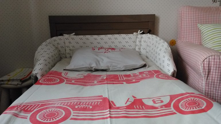 Мы добавили бортик, потому что звук бьющейся об спинку головы моего малыша, очень ранит моё сердце:)