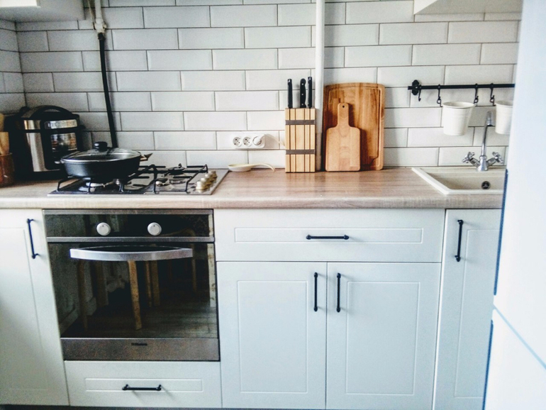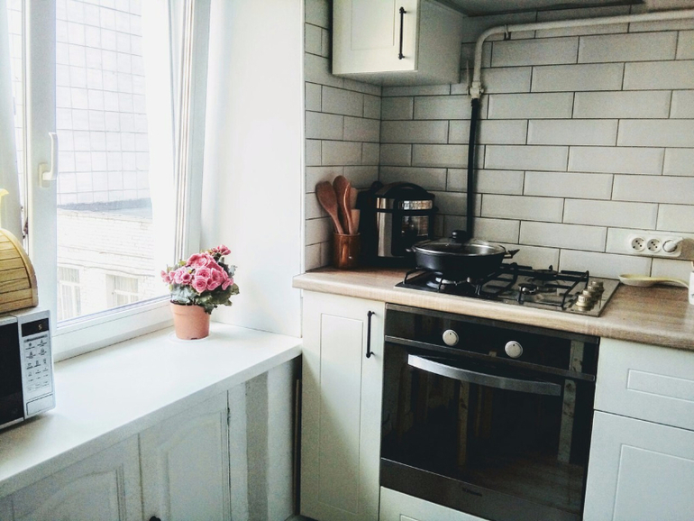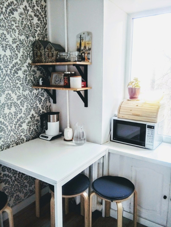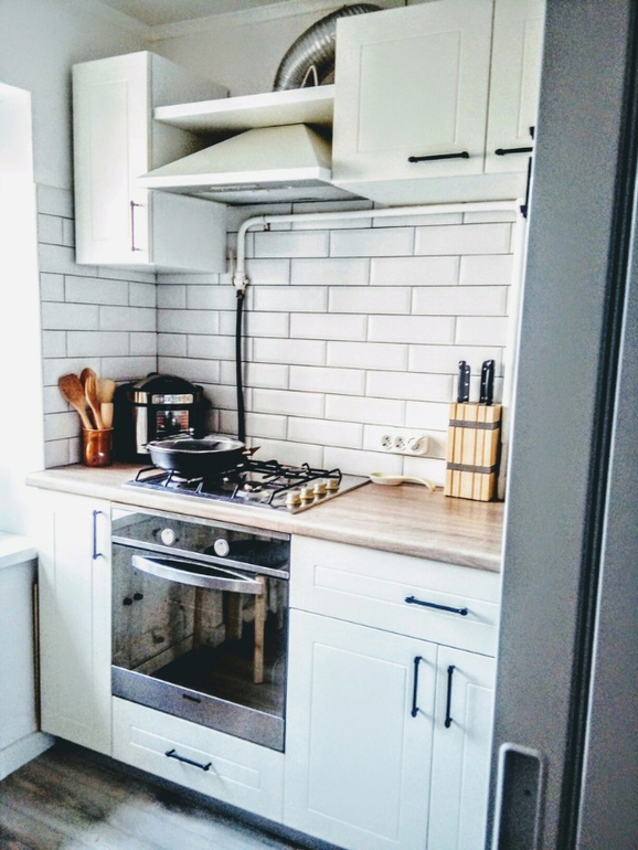 Молодцы! Правильный цвет для такой крошечной кухни. Выглядит все аккуратно и уютно)
