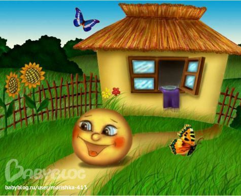 Жили-были старик со старухой. Вот и говорит старик старухе: — Поди-ка, старуха, по коробу поскреби, по сусеку помети, не наскребешь ли муки на колобок. Взяла старуха крылышко, по коробу поскребла, по сусеку помела и наскребла муки горсти две. Замесила муку на сметане, состряпала колобок, изжарила в масле и на окошко студить положила. Колобок полежал, полежал, взял да и покатился — с окна на лавку, с лавки на пол, пó полу к двери, прыг через порог — да в сени, из сеней на крыльцо, с крыльца на двор, со двора за ворота, дальше и дальше. Катится Колобок по дороге, навстречу ему Заяц: — Колобок, Колобок, я тебя съем! — Не ешь меня, Заяц, я тебе песенку спою: