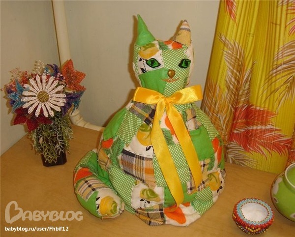 Здравствуйте девочки в интернете нашла вот такого кота грелку на чайник из лоскутов,только не пойму как сделать выкройку,ничего в интернете похожего не нашла,если кто может нарисовать выкройку пишите
