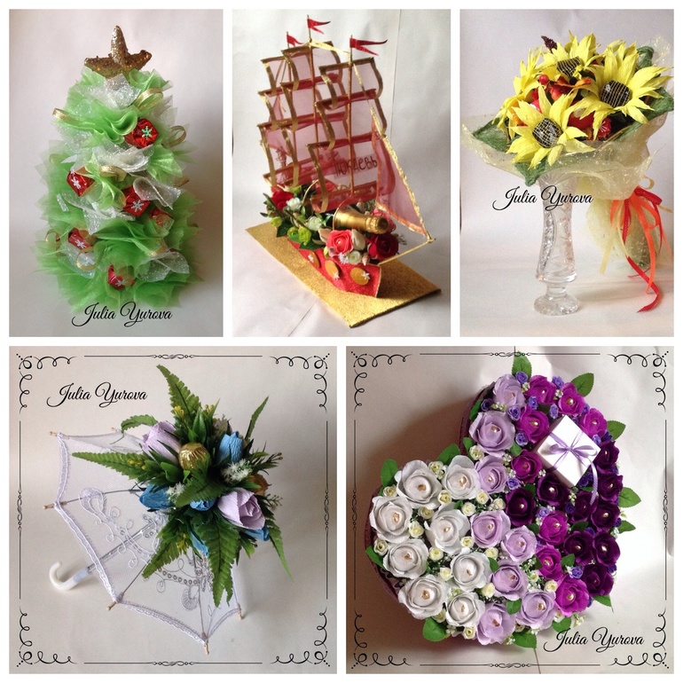Есть в наличии небольшой топиарий и елочка из конфет.