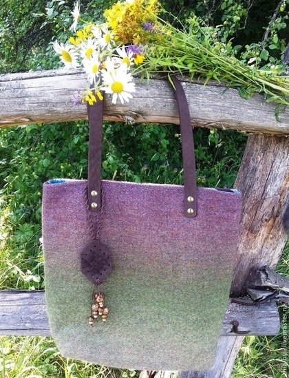 Домотканая сумка, соткана на ручном ткацком станке. Для сукна использовалась прибалтийская пряжа Кауни, расцветки микст. Переходы цвета очень плавные и фантазийные.