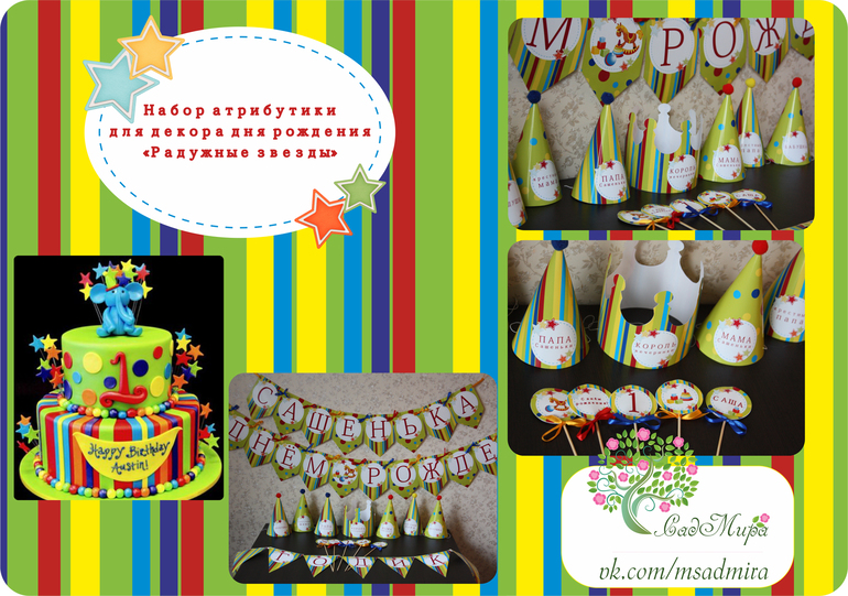 Оформление праздников, аксессуары для фотосессийНабор атрибутики для декора дня рождения "Радужные звезды".