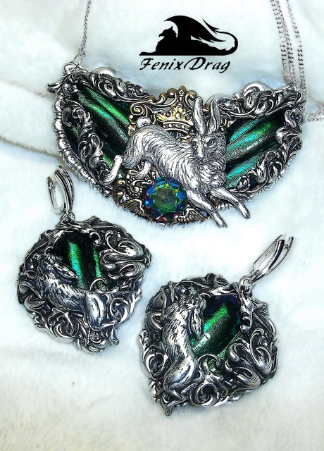 Комплект: Колье и серьги "Иди за белым кроликом...Алиса..." в стиле Винтаж (Винтажный, Фэнтази, Старинный, под старину стили)