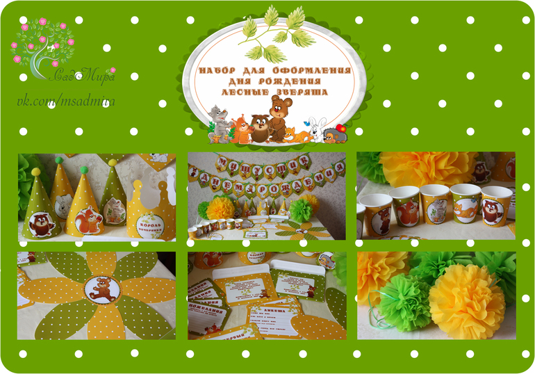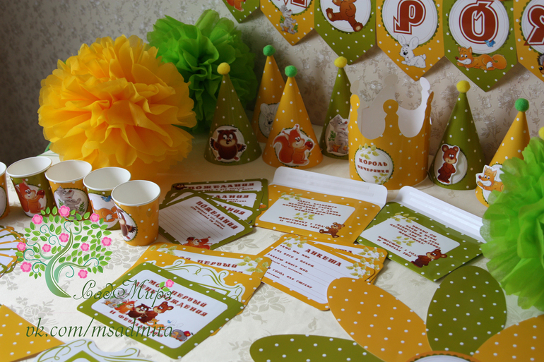 Оформление праздников, аксессуары для фотосессийНабор для оформления дня рождения "Лесные зверята".
