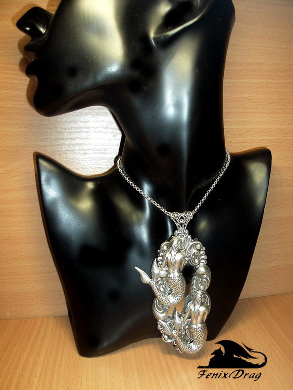 Крупный кулон "Ундина (Русалка)" с зеркалом в стиле Винтаж (Старинный стиль)